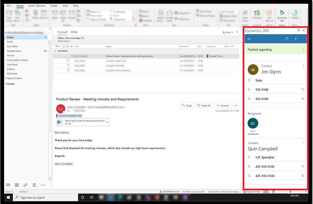 Recently we set up Dynamics 365 App for Outlook for a customer.