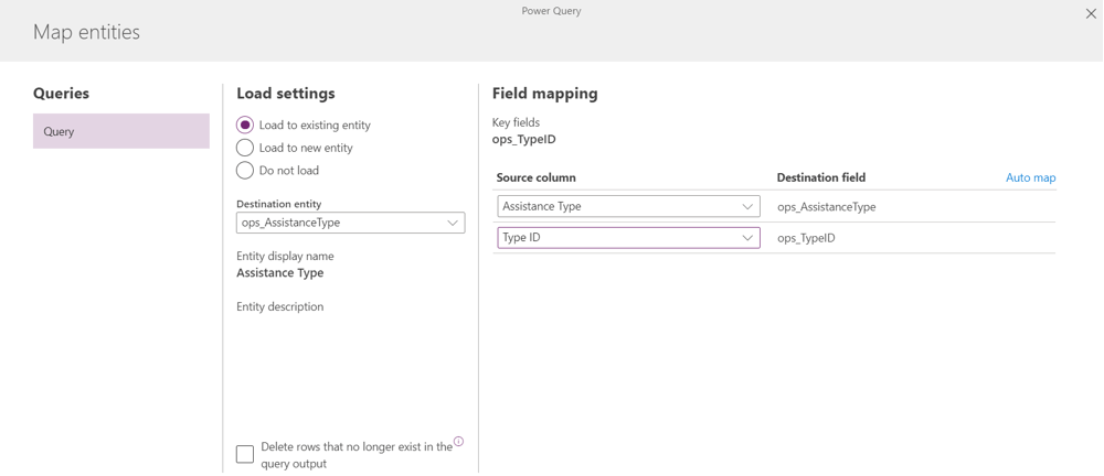 Unable to load data to the existing custom entity on CDS from CSV or Excel via Dataflow.