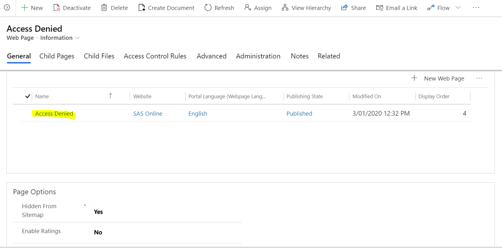 You can’t see it on this screenshot because the issue is fixed but in our case we were missing Page Not Found page on the portal. Creating the page didn’t fix the issue, unfortunately. Fortunately, it gave us another clue. Well, I won’t guess it myself, I was directed by one very intelligent Microsoft professional. Our issue was related to Access Denied page.