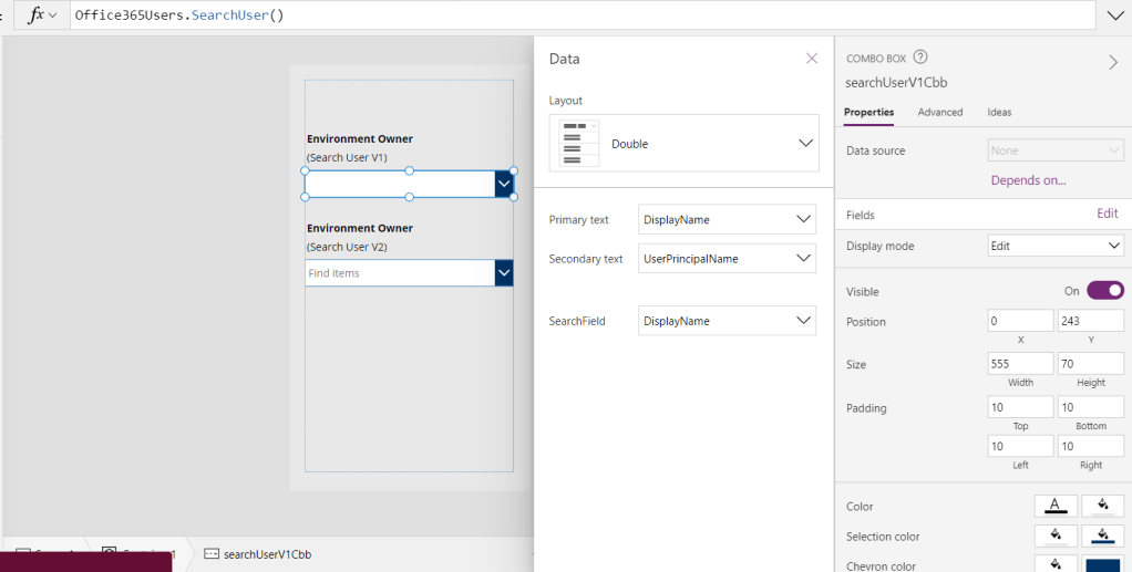 Office365Users.SearchUserV2({searchTerm:searchUserV2Cbb.SearchText}).value